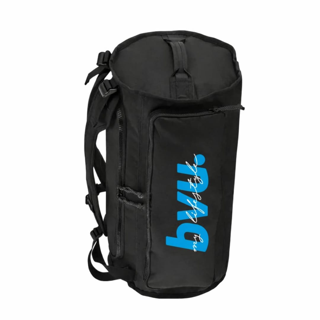 100% poliestere riciclato, borsone zaino, apertura con 2 zip bidirezionali, cinghie regolabili, tasca interna per tablet, laptop (fino 13″), tasca grande posteriore con zip, 2 tasche frontali con zip, tasca interna a rete.